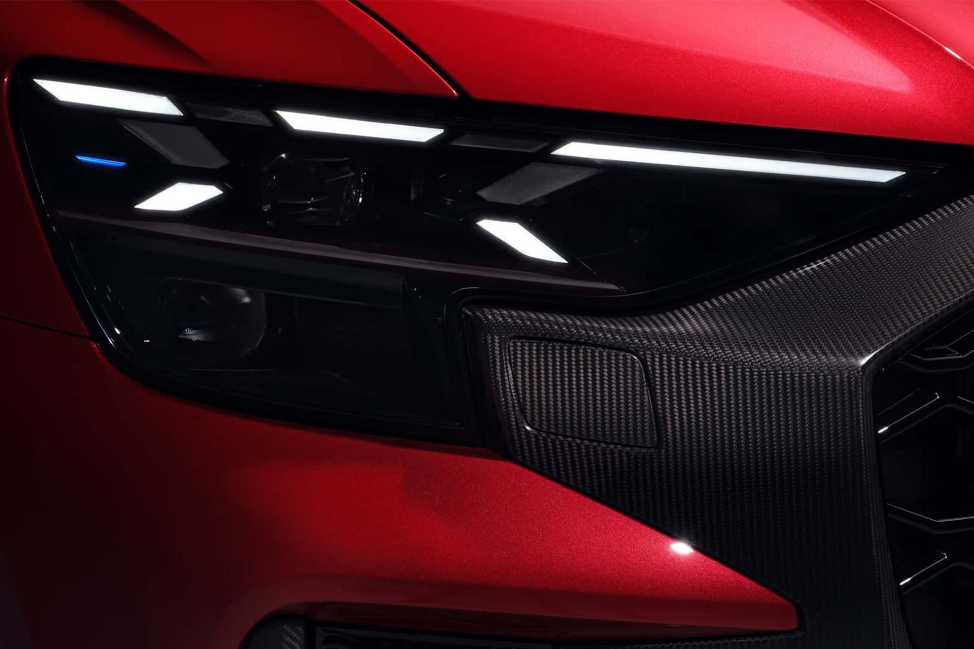 RS Q8 پرفورمنس همانند یک خودرو سوپرلوکس با چراغهای جلوی هوشمند ماتریکس LED و لیزری برای نور بالا و چراغهای OLED با پنج حالت نورپردازی قابل تنظیم در عقب ارائه میشود.