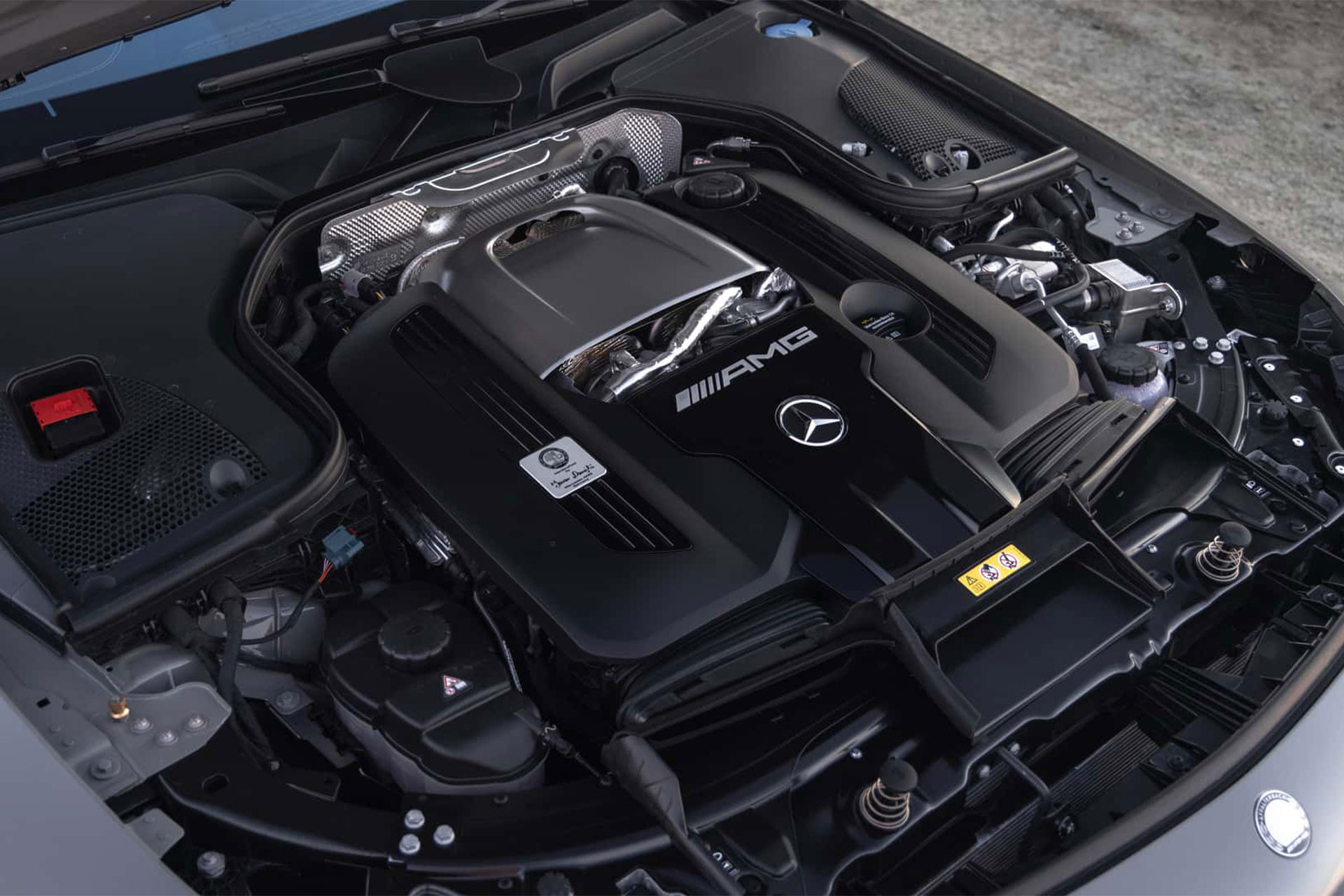 موتور هشت سیلندر 2025 AMG GT63 S E Performance میتواند بهتنهایی ۶۳۰ اسببخار و ۸۹۶ نیوتونمتر گشتاور تولید کند که با حضور موتور کمکی الکتریکی به ۸۳۱ اسببخار و ۱۳۹۳ نیوتونمتر گشتاور تبدیل میشود. خودرو جدید مرسدس-آ ام گ تمام چرخ محرک (AWD) است و از سیستم تعلیق AMG Ride Control+ استفاده میکند.