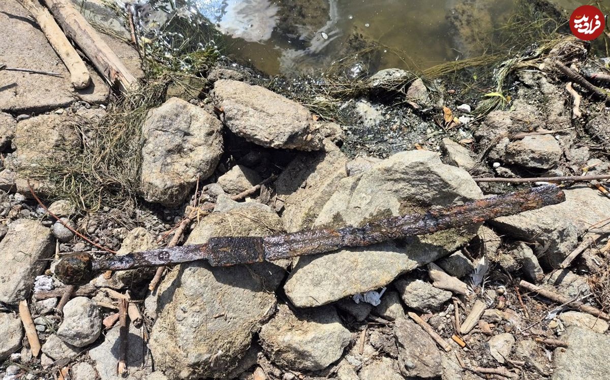 مردی که برای دیدن کاهش سطح آب به رودخانه‌ای در لهستان سرزد و شمشیری قرون‌وسطایی پیدا کرد.