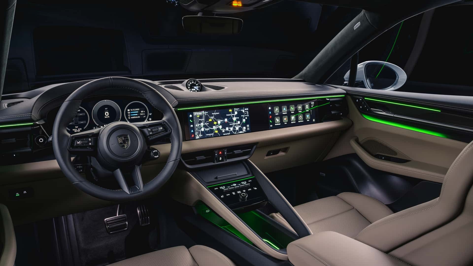 در داخل کابین، پورشه ماکان به نمایشگر ۱۰٫۹ اینچی مخصوص راننده، نمایشگر ۱۲٫۶ اینچی مرکزی و نمایشگر سربالا (هدآپ) ۸۷ اینچی مجهز است.