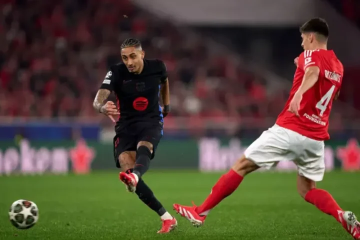 پیروزی ده نفره بارسلونا مقابل بنفیکا با تکگل رافینیا