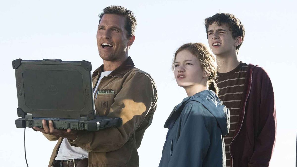 «بشریت روی زمین متولد شد. هیچوقت قرار نبود همینجا هم از بین برود.» داستان فیلم در آیندهای نه چندان دور رخ میدهد که زمین به دلیل تغییرات اقلیمی و مشکلات زیستمحیطی دیگر برای انسانها قابل زیست نیست. گروهی از فضانوردان به رهبری کوپر به مأموریتی فرستاده میشوند تا از طریق یک کرمچاله در نزدیکی زحل، به سیارات دیگری دست یابند که احتمال دارد انسانها بتوانند در آنها زندگی کنند. کوپر باید بین نجات بشریت و خانوادهاش انتخاب کند و در طول فیلم، مفهوم زمان، فضا و عشق به شکلهای مختلفی بررسی میشود.