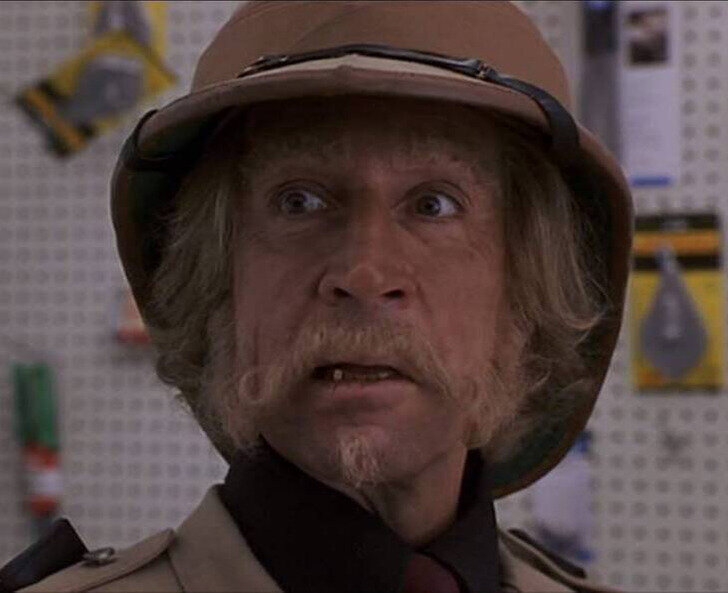در حوالی اواخر فیلم «جومانجی»، هنگامی که آلن پریش تاس را می اندازد و عددی می آید که به او کمک می کند تا بازی را ببرد، شخصیت شکارچی به سمت او حمله می برد. در نتیجه ی این اتفاق، شکارچی و متعلقاتش و همینطور همه ی چیزهای مربوط به بازی به درون صفحه ی آن کشیده می شود. اما شکارچی وسایل شکارش را از فروشگاهی در شهر خریده بود، پس منطقی نیست که آن ها هم ناپدید شوند.